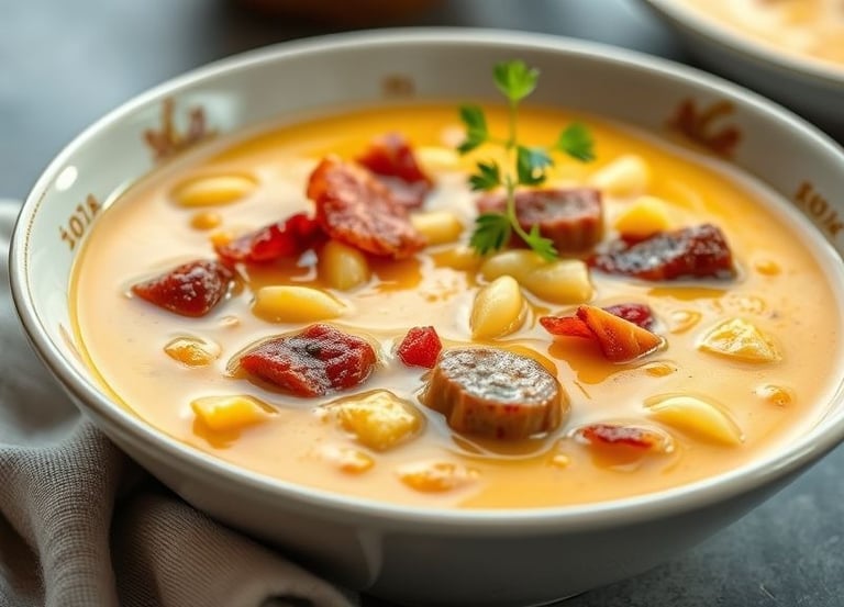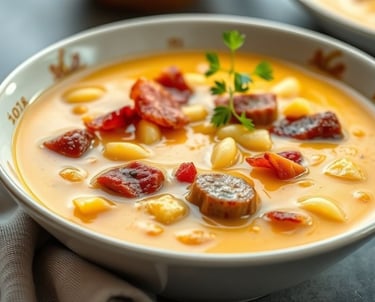 Caldo Cremoso de Aipim com Calabresa Aconchegante, nutritivo e perfeito para dias frios.