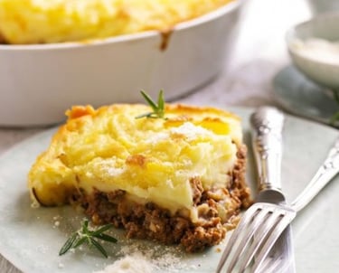 Costela bovina desfiada e bem temperada, coberta com um purê cremoso de Aipim da Terra Preta. Finalize com queijo ralado e farinha de rosca, leve ao forno até dourar.