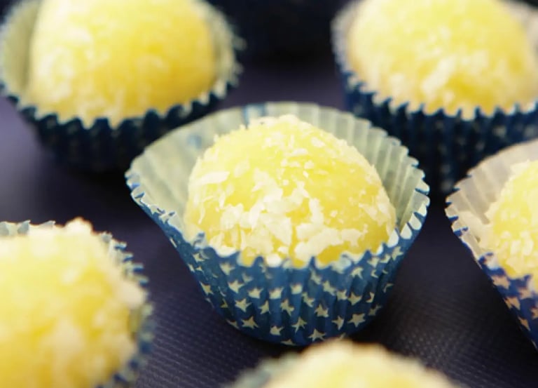 Enrole com as mãos, passe no coco e finalize com cravo-da-índia.